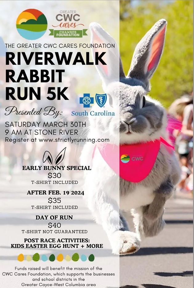 The inaugural Riverwalk Rabbit Run 5K, organized by the Greater CWC Cares Foundation, is set to take place on March 30 at 9 am. Participants are invited to either run or walk along the scenic route by the Congaree River and through the Cayce-West Columbia Avenues. Following the race, there will be an Easter Egg Hunt for the kids, although participants are reminded to bring their own Easter baskets.